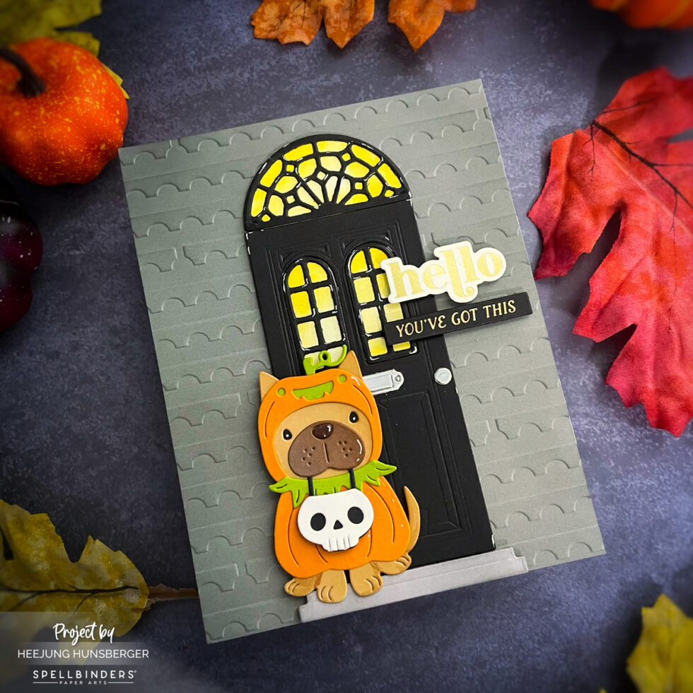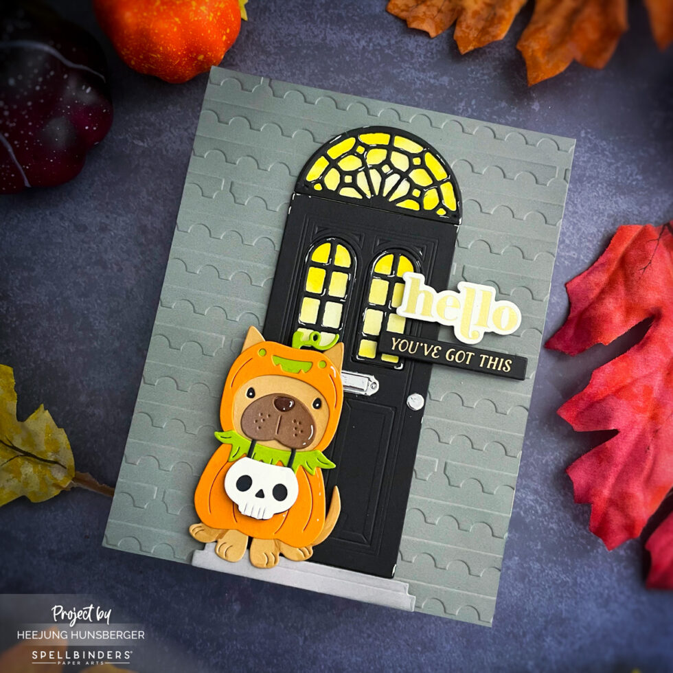 Hello, crafty friends! It’s that time of year again, and I’m so excited to share my latest Halloween card featuring the adorable Pupkin die from Spellbinders. This little guy in his pumpkin costume is just too cute to spook!