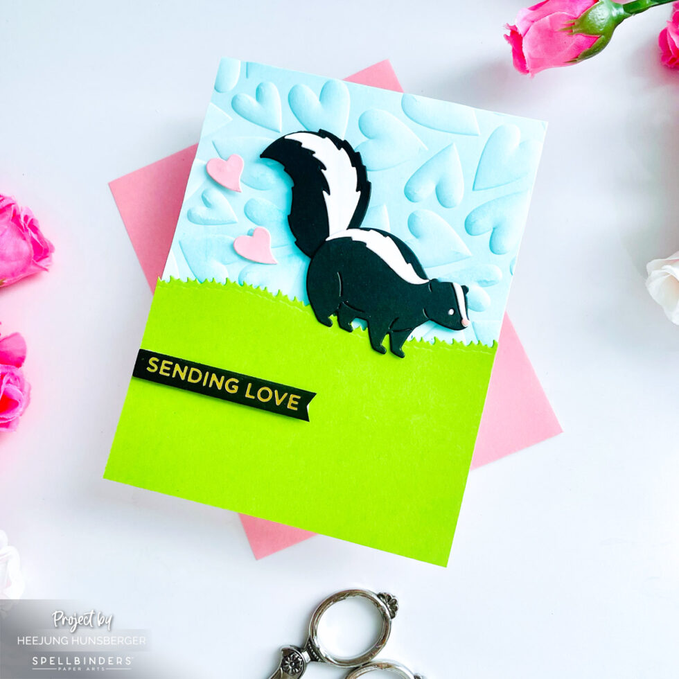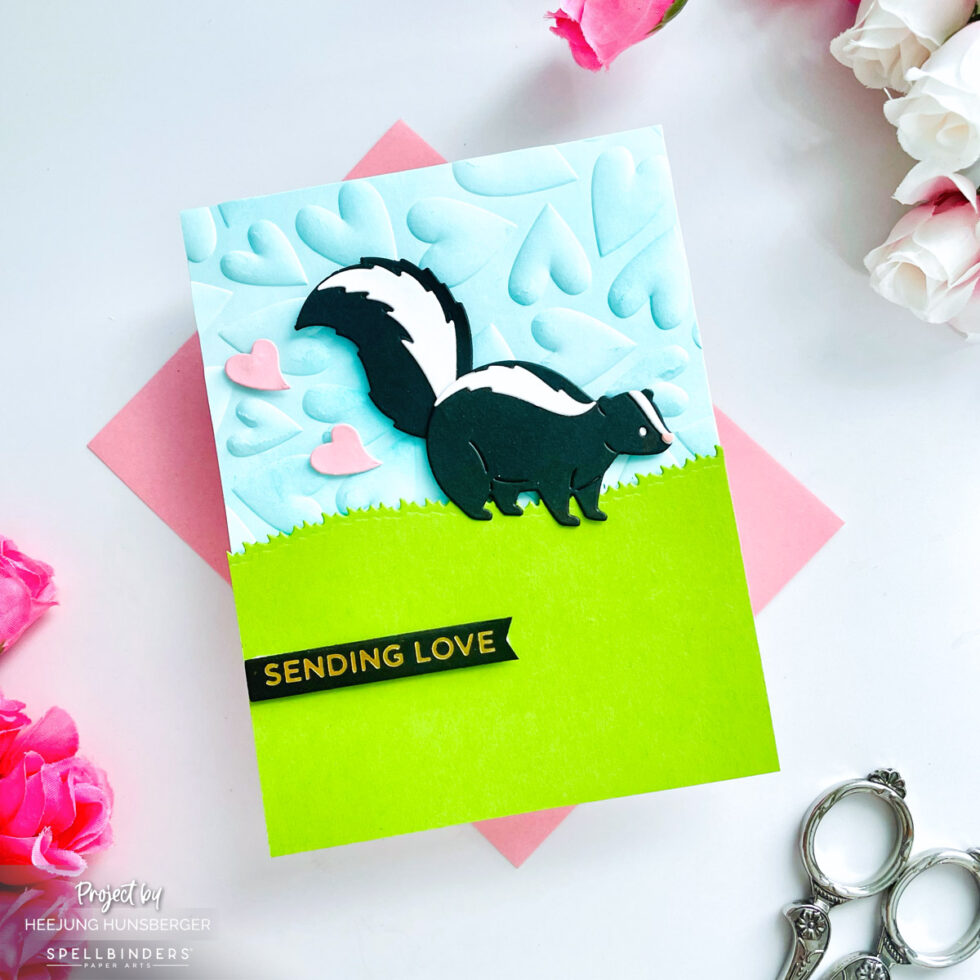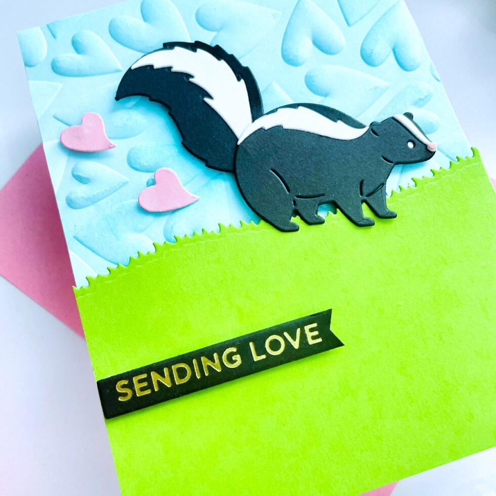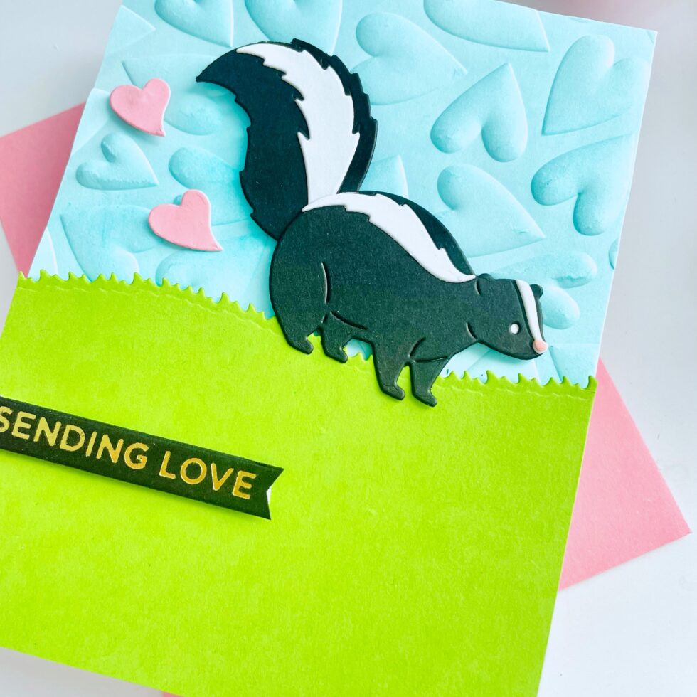 Today, I’m sharing a super cute card featuring the exclusive Love Stinks Skunk die from Spellbinders. This little guy is the perfect mix of cheeky and sweet, and I had so much fun bringing him to life!