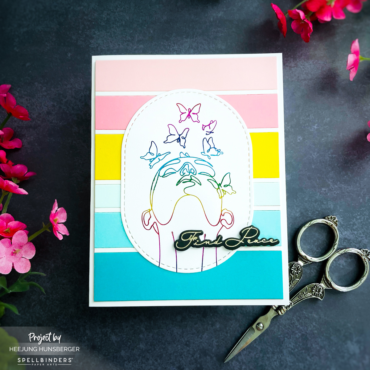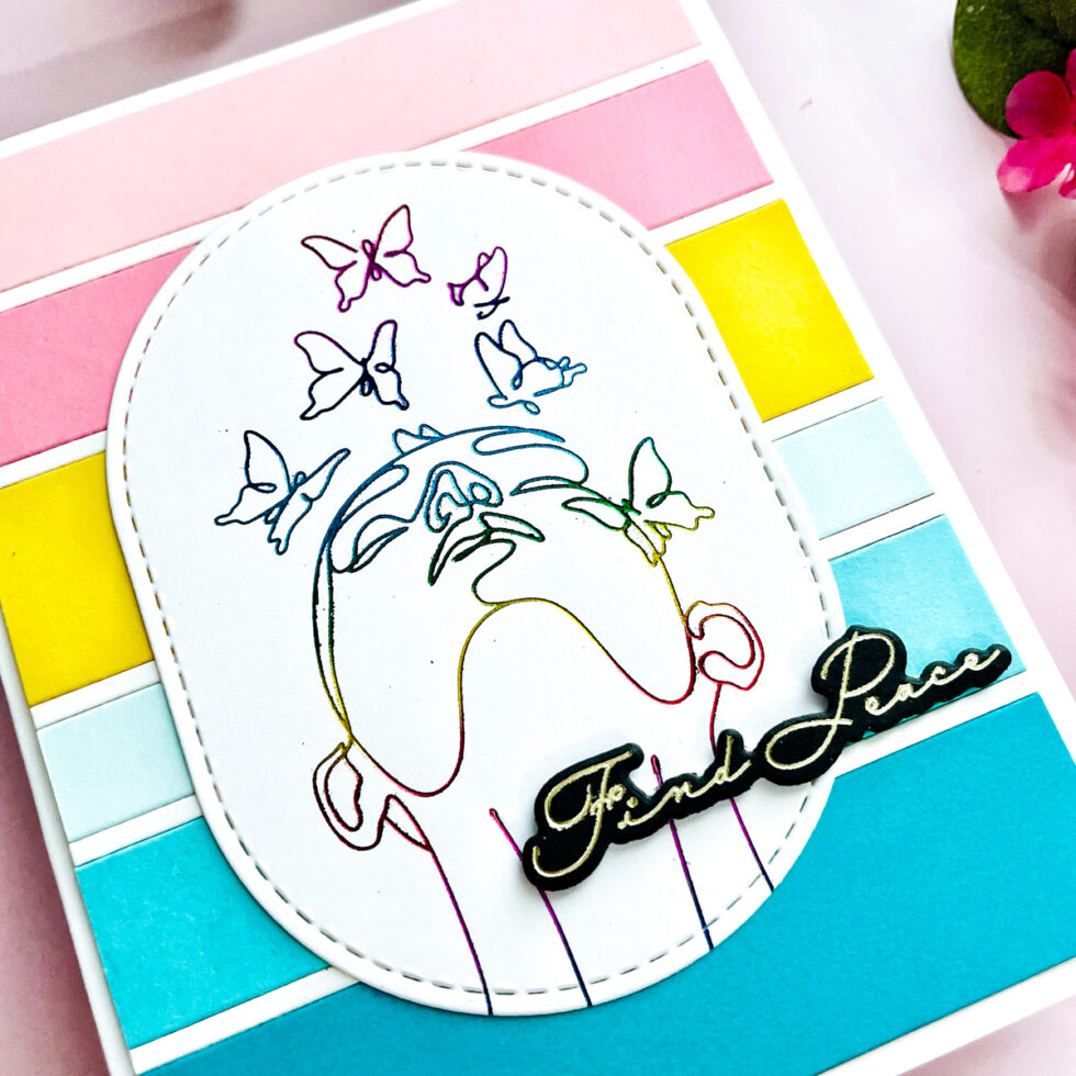 For the main event, I returned to the Whisper Weave Press + Foil Plate & Die Set by Jaycee Gaspar. I chose another captivating image plate from this set and applied stunning Rainbow Hot Foil to make the details truly pop.