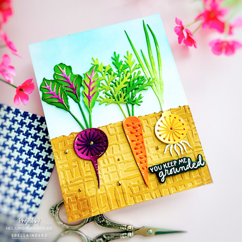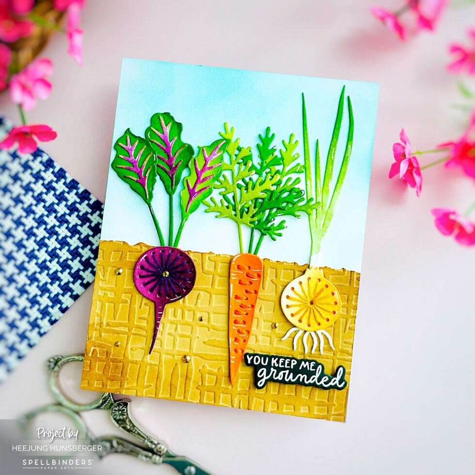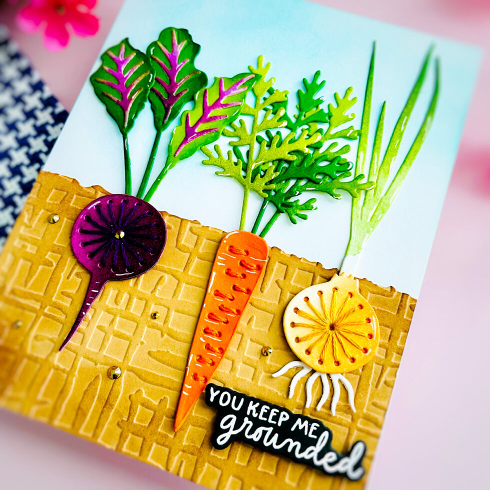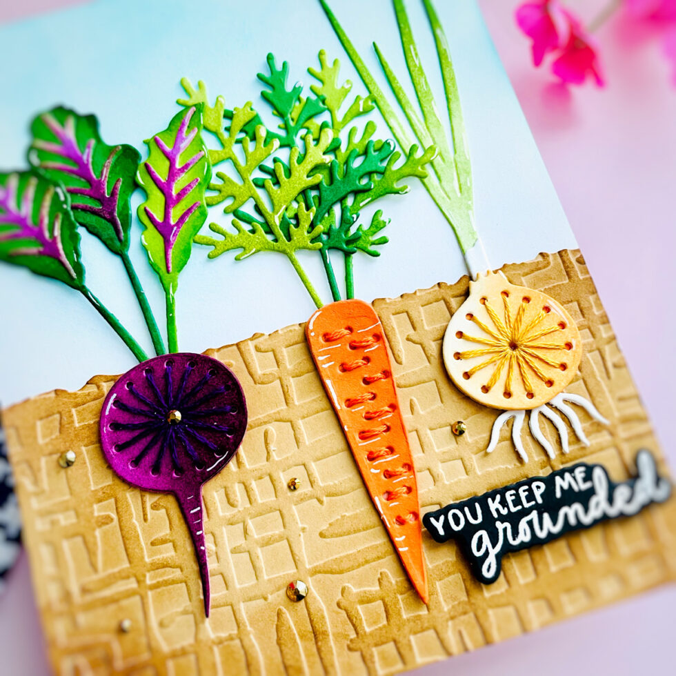 Hello, crafty friends! Today I’m sharing a fun, textured project featuring the April 2026 Stitching Die of the Month (Rooting For You Die Set). This set is so unique because it allows you to “plant” your veggies right into the card!