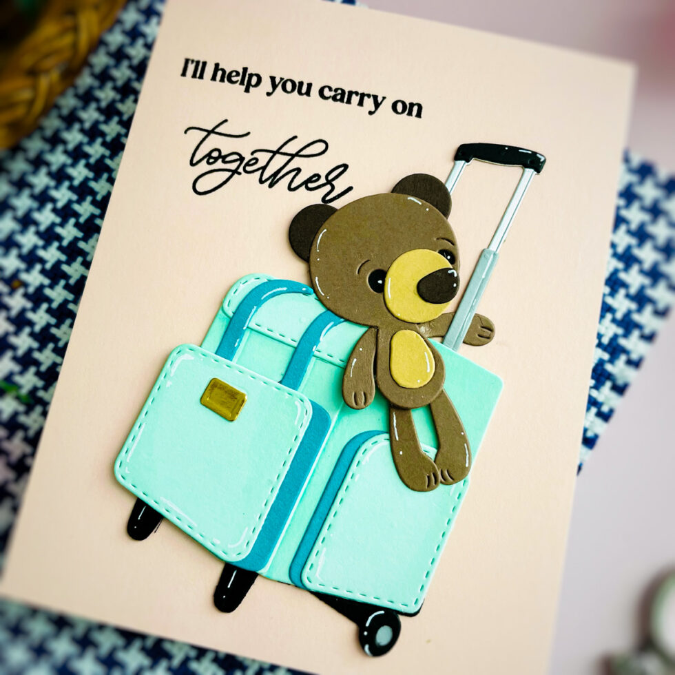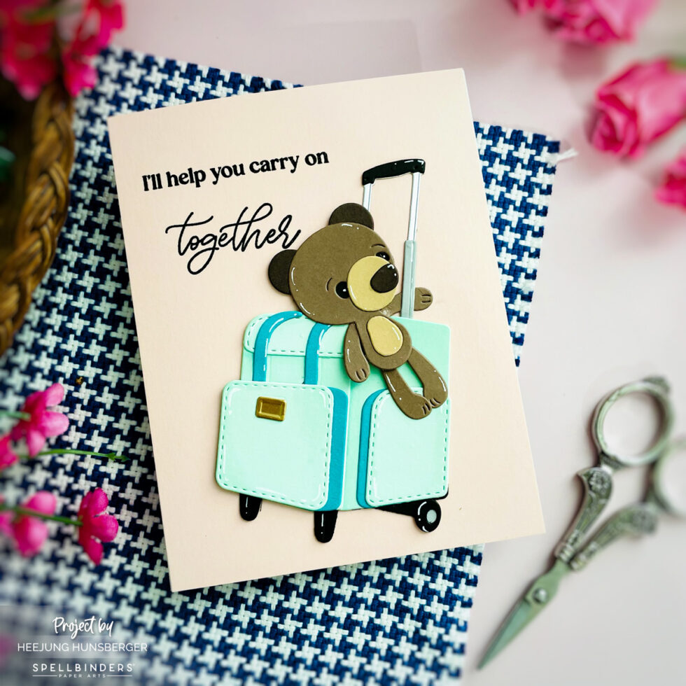 Hello everyone! I’m back with a sweet and simple card featuring the We All Have Baggage Collection from Spellbinders. This project combines adorable die-cutting with a clean, embossed sentiment for a polished look that’s perfect for letting someone know you’re there for them.